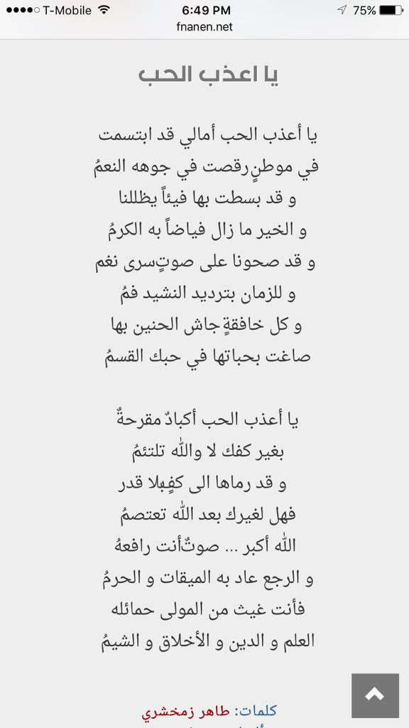 فزي له يا أرض لاجاك بشويش يتمايل هو مو قصده ولكن كذا ربي خلقه ما تصنعها ولا تبرره كل الوسايل هو مو قصده ولكن كذا ربي خلقه علق الدنيا بخطوة حتى قلبي علقه. نقدم لكم كلمات اغنيه فزي له يا ارض التي كتبها سعود البابطين وغناها الفنان السعودي عبد المجيد عبد الله الذي ي لقب ب أمير الطرب وقد بدأ عبد المجيد عبد الله مسيرته الفنية منذ أوخر السبعينيات في القرن الماضي وقام.