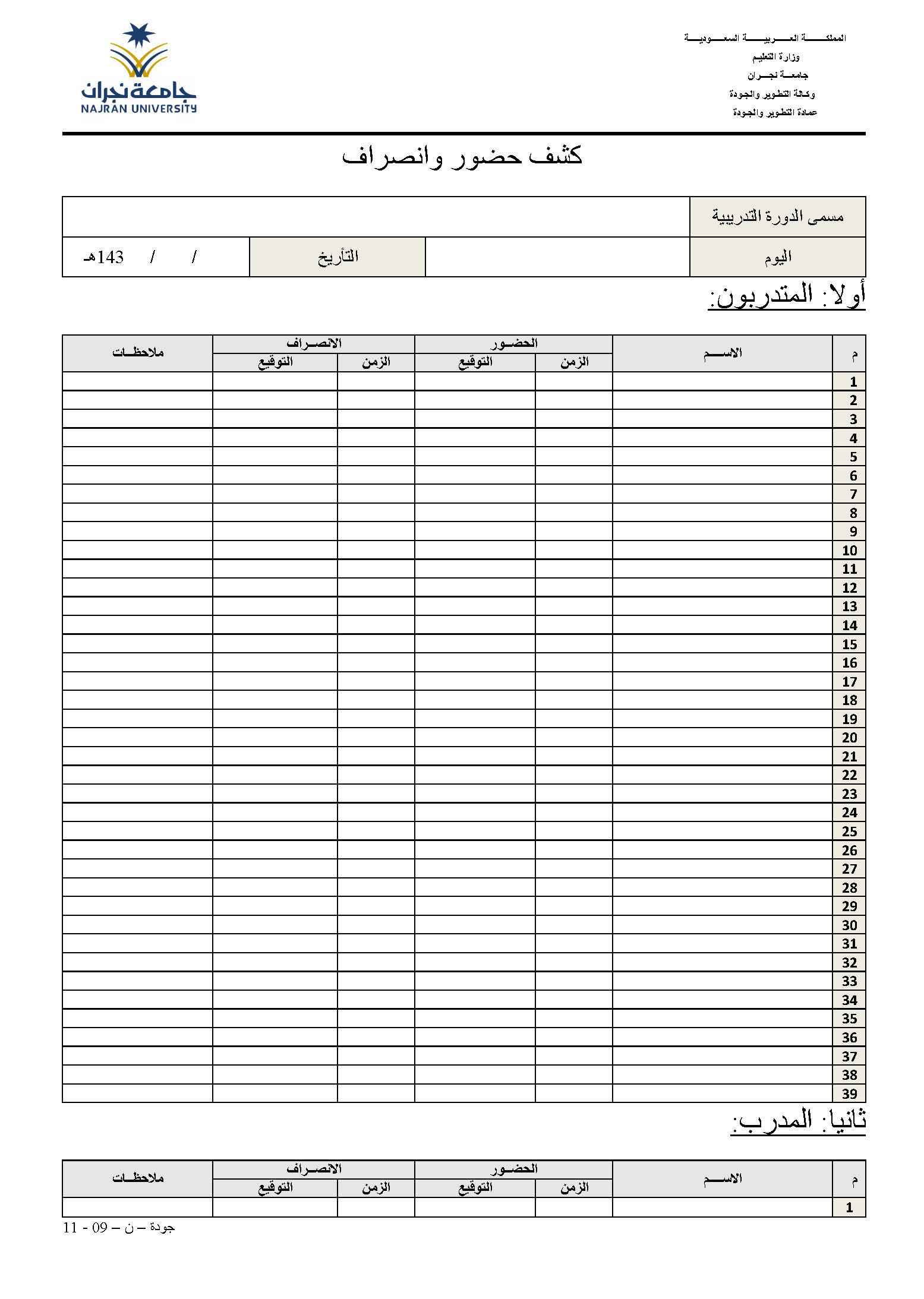 كشف حضور وانصراف دورة تدريبية